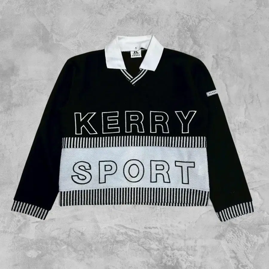 로고 편직 디자인이 눈길을 끄는 카라 부착 니트입니다.