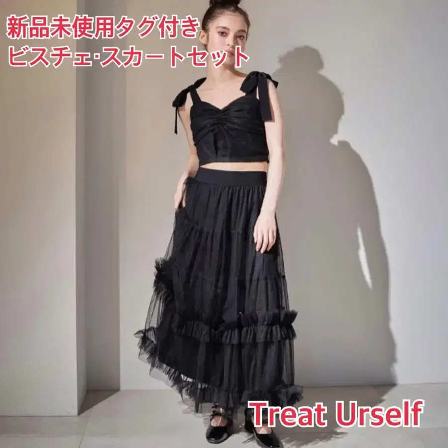 이 스커트 셋업은 우아한 발레리나 스타일을 접목한 디자인입니다. 리본이 달린 튤 상의가 특징이며, 가볍고 여성스러운 인상을 줍니다.