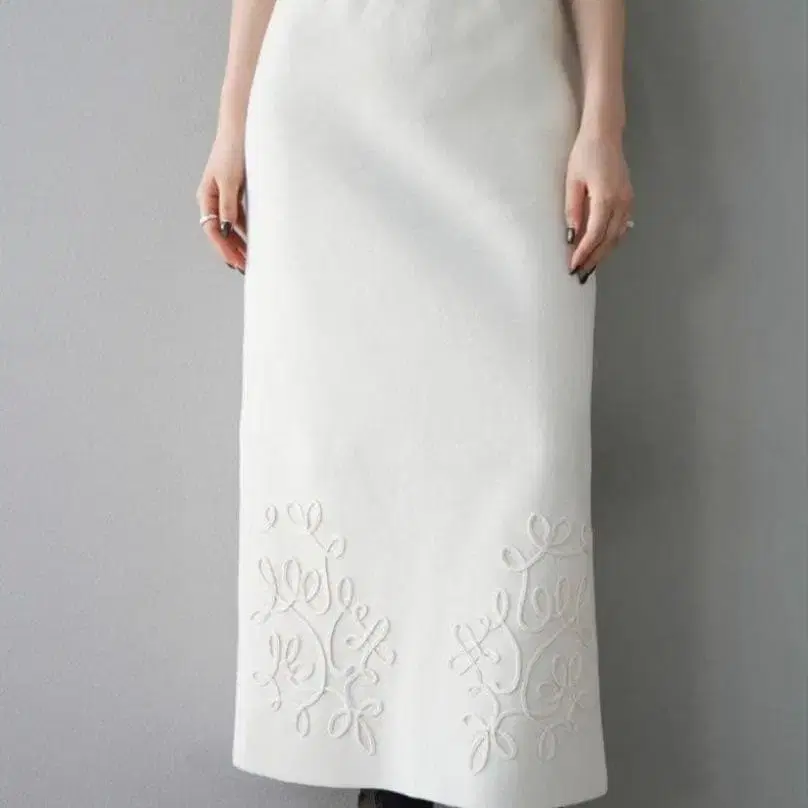 코드 자수 코튼 니트 타이트 스커트/아이보리 프리 사이즈