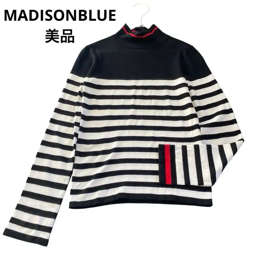 매디슨 블루 터틀넥 보더 니트 스웨터