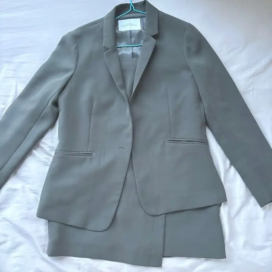 세탁 가능한 셋업으로, 자켓과 스커트 세트입니다.