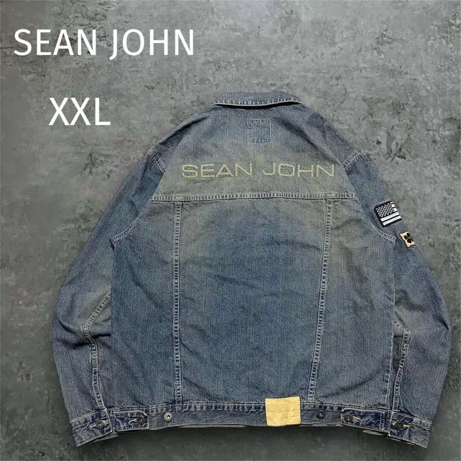SEAN JOHN 숀 존 데님 자켓 Gジャン 백 로고 자수 와펜 성조기 클로버 힙합 B계 Y2K 스트릿 빅 사이즈 오버 사이즈 XXL 남성용 구제 의류