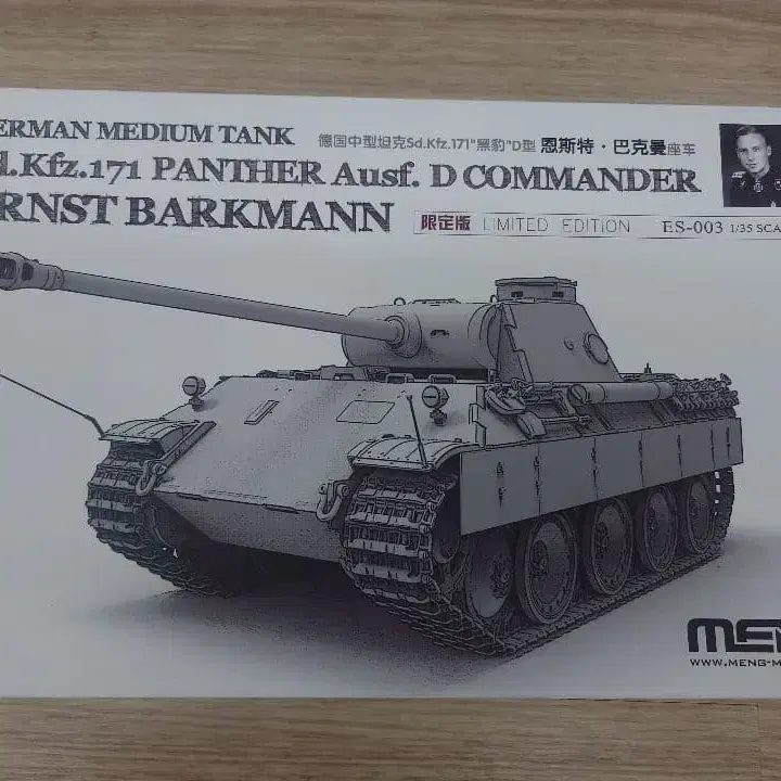 1/35 스케일 Sd.Kfz.171 PANTHER Ausf. D COMMANDER 프라모델 키트. - 모델명: Sd.Kfz.171 PANTHER Ausf. D COMMANDER - 스케일: 1/35 - 제조사: MENG - 특기사항: ERNST BARKMANN - 에디션: MED. EDITION - 상품 타입: 프라모델 키트 방에서 장기간 보관되었습니다. 외장 등은 사진을 확인해 주세요. 상자에 약간의 흠집이 있습니다. 내용물은 미개봉입니다. 노후화를 이해하신 후 구매해 주세요. 제작에는 문제가 없으며, 내용물은 미개봉품으로 데미지 등은 없습니다. 반품은 받지 않습니다. 본 상품이 크기 때문에, 맞는 종이상자 같은 배송용 자재가 집에 없을 가능성이 높습니다. 그럴 경우 에어캡으로 상품을 감싼 후, 포장지로 감싸서 발송합니다. 잘 부탁드립니다. 방문해 주셔서 감사합니다.
