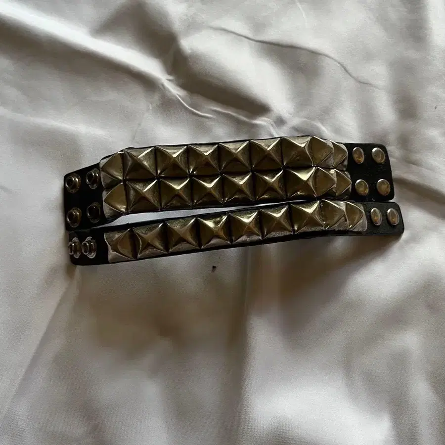 자동 번역되었어요. 원문보기00년대 ~ Y2K 시대의 분위기를 짙게 남기는 스터드 가죽 뱅글/팔찌.