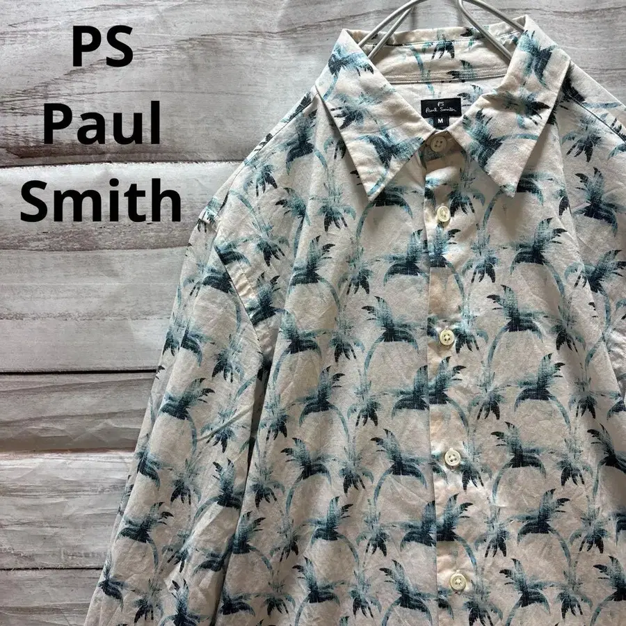 전체에 야자수가 프린트된 임팩트 있는 개성 있는 셔츠입니다.