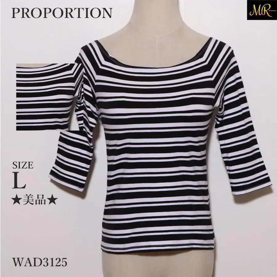 새상품급 PROPORTION 상의 블라우스 7부 소매 보더 스트레치 소재
