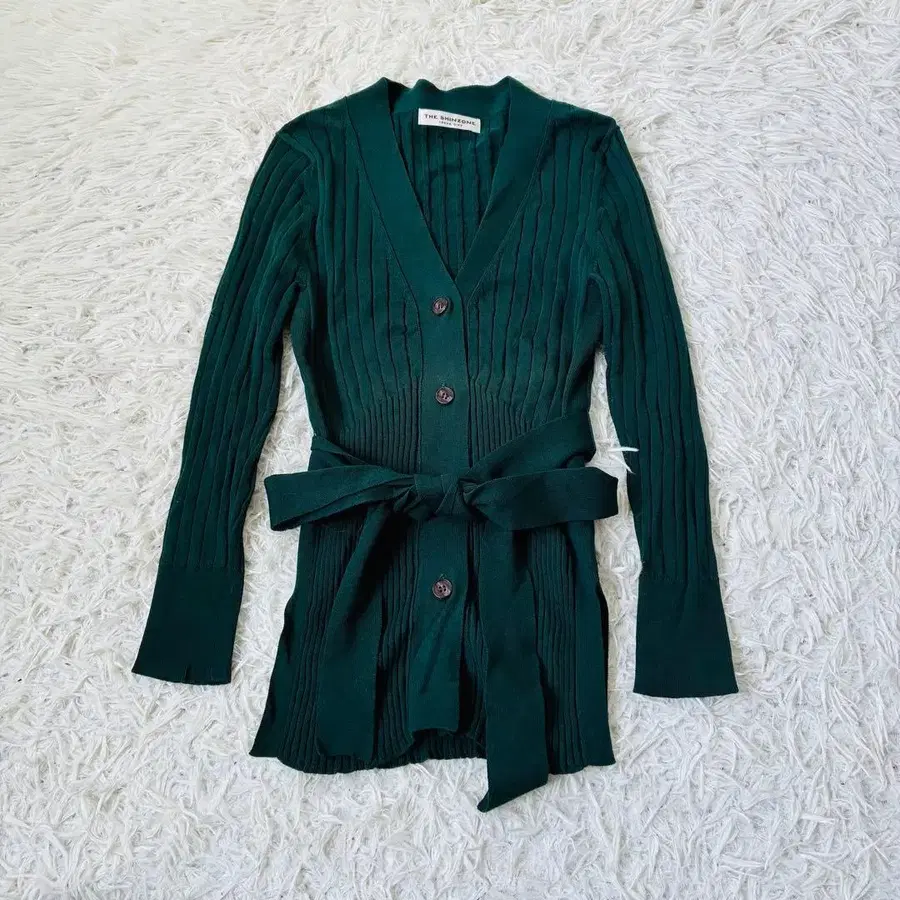 허리 리본에 상하의 리브 사이즈가 다른 멋진 가디건입니다.
