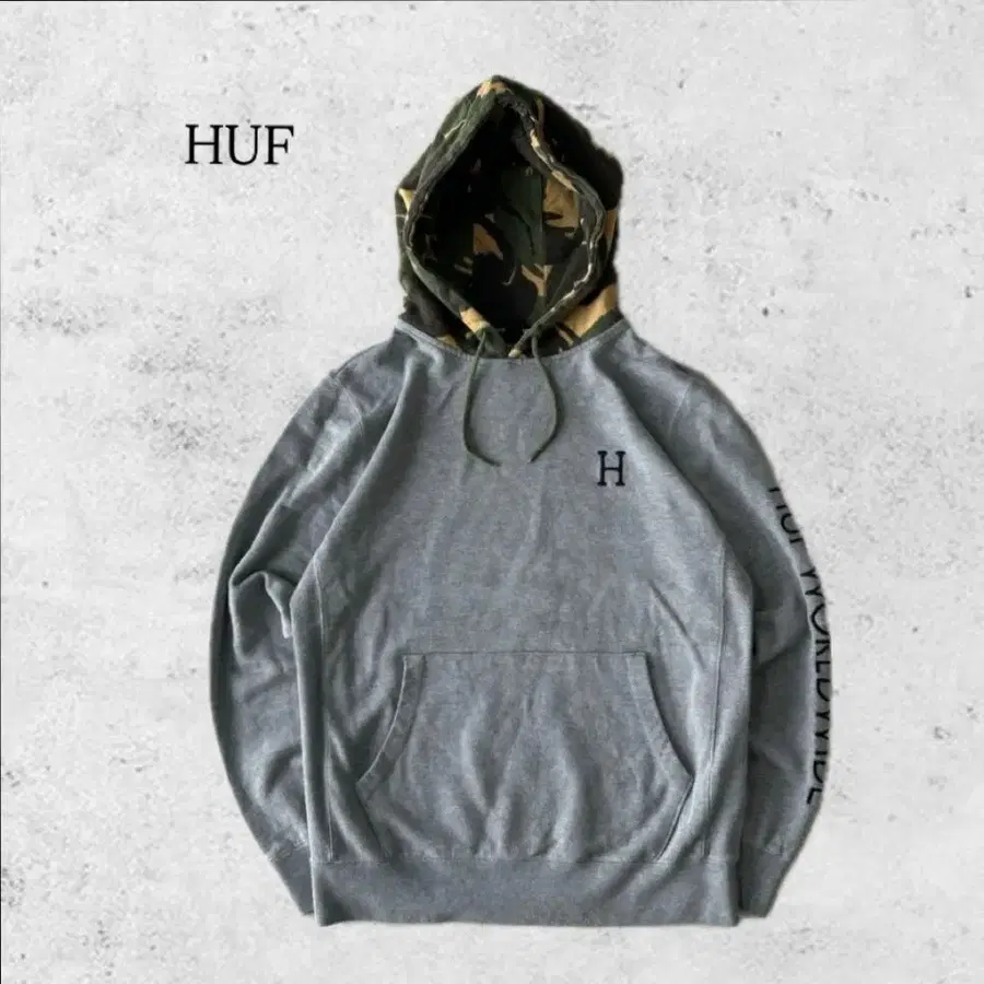 가슴 부분의 [ H ] 자수와 소매의 HUF WORLDWIDE 로고가 은은한 악센트를 더합니다.