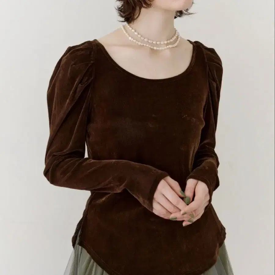 택 포함 새상품 시어 벨로아 퍼프 개더 TOPS 브라운 라벨에튜드