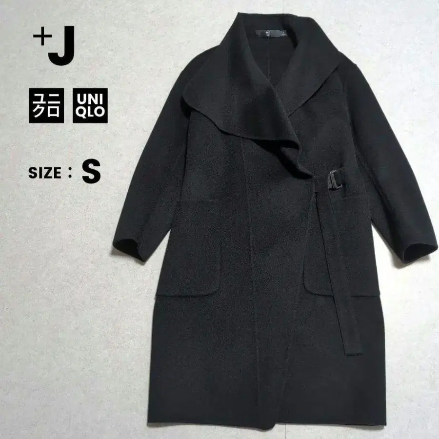 유니클로 +J 질 샌더 울 캐시미어 블렌드 노카라 코트 블랙. S