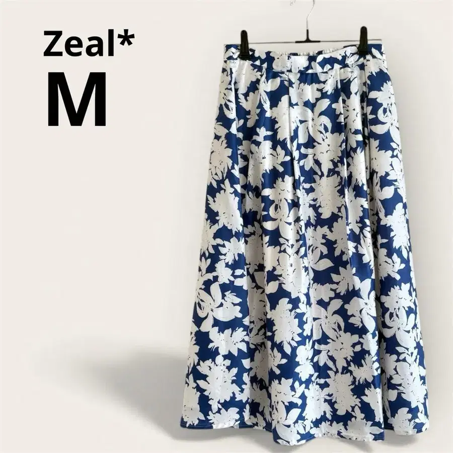 플레어 스커트 블루 화이트 꽃무늬 M 허리밴딩 상큼 고급 새상품급