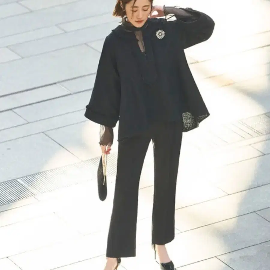 블랙 원톤 코디로 클래시컬한 느낌을 연출할 수 있습니다.