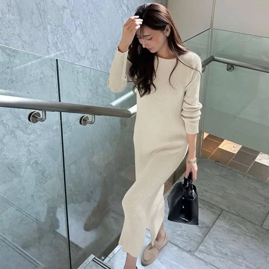 KOBE LETTUCE 리브 니트 롱 슬리브 원피스