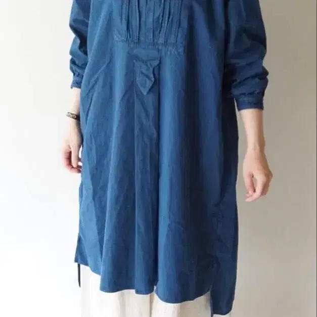 이곳에서 시착 정도의 새상품급 제품을 양도받은 후, 2~3회 착용했습니다. 클리닝 완료했습니다. 프랑스 1910년대 롱 셔츠를 베이스로 제작된 셔츠 원피스로, 원래 염색 불균일 및 인디고 특유의 질감이 있는 제품입니다. 사진 4장 이후가 실제 제품입니다. 현재로서는 가격 인하를 고려하고 있지 않습니다.