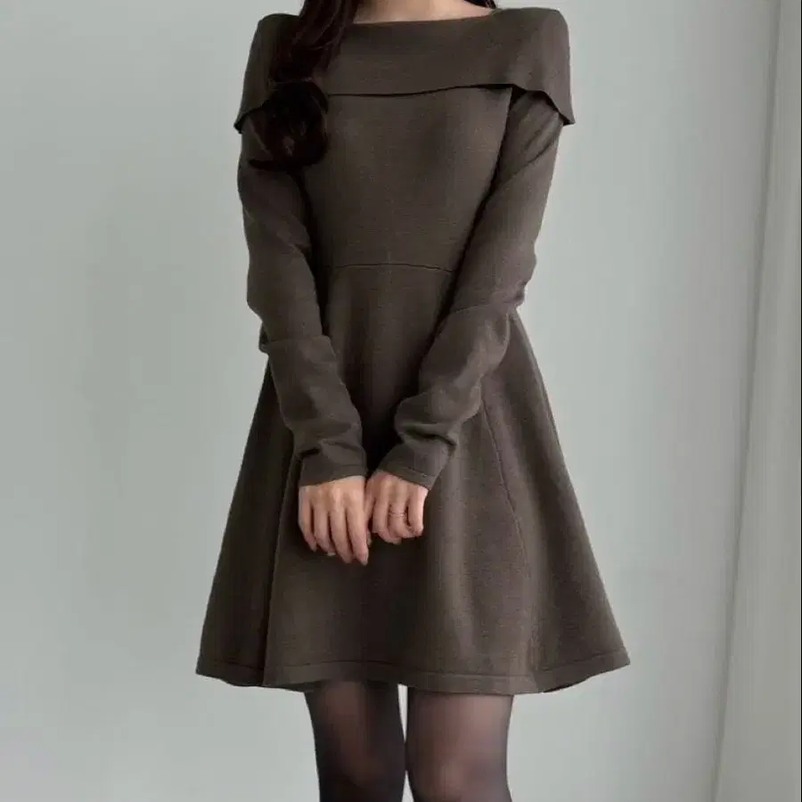 살짝 보이는 피부가 페미닌한 분위기를 연출하는 니트 원피스입니다.