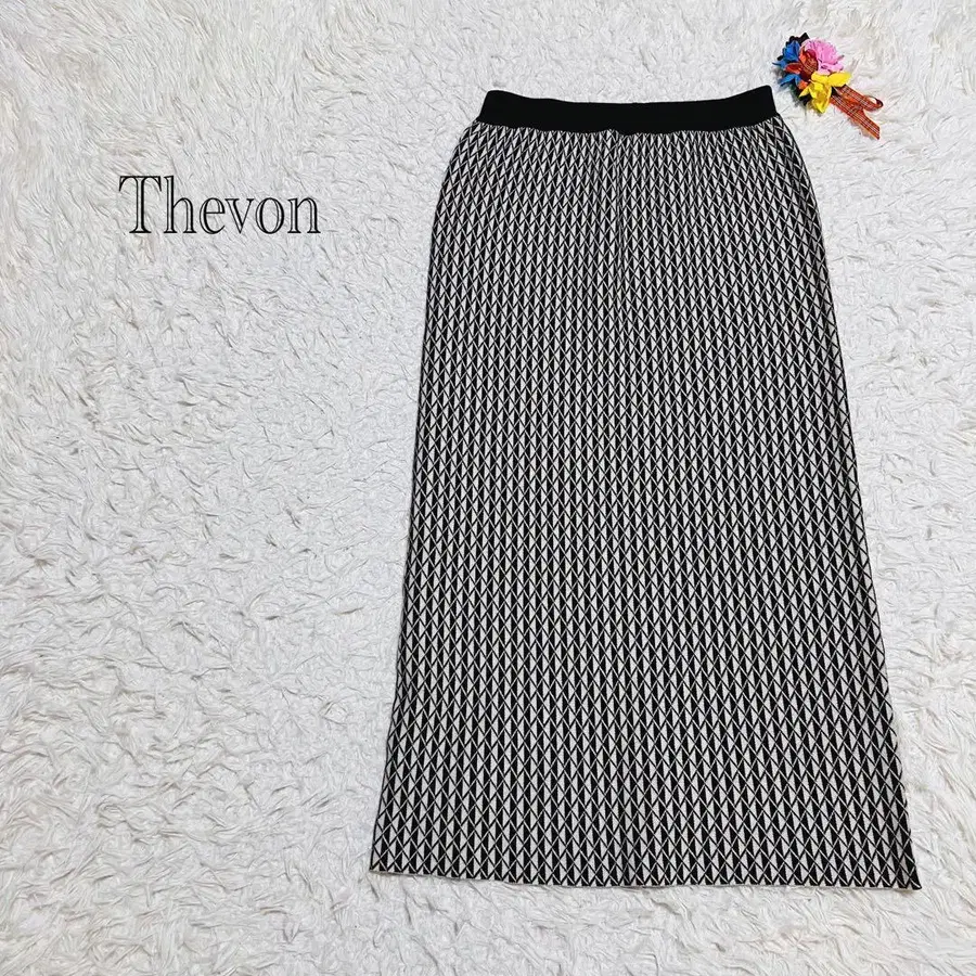 제본 롱 스커트 니트 기하학 패턴 허리밴딩 슬릿 백 출퇴근