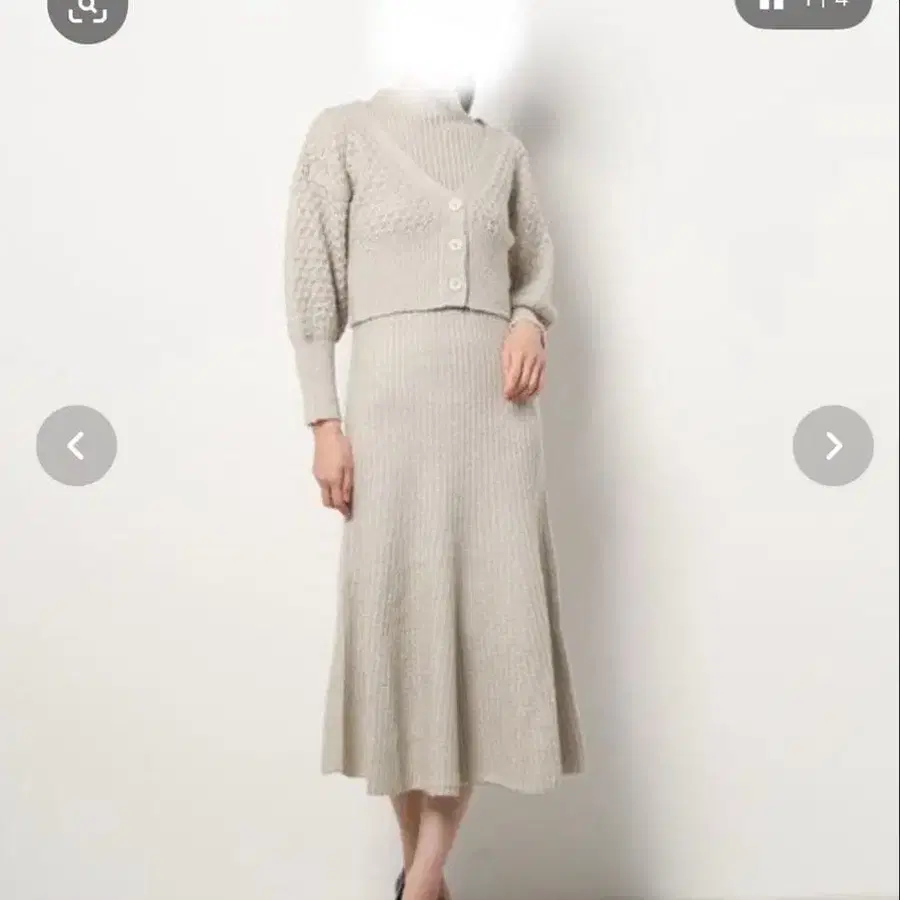 니트 소재의 그레이 (그레이지) 콤비 원피스, 퍼프 슬리브 디자인이 특징입니다.