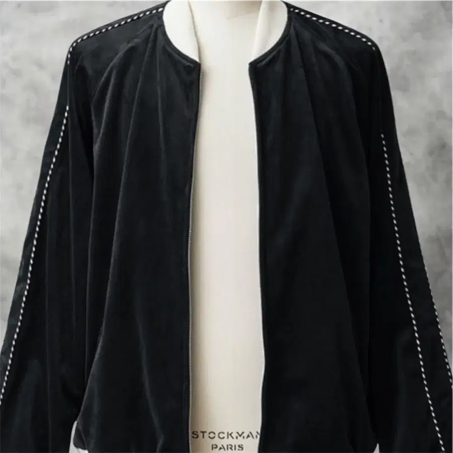 과감하게 일부러 자수가 없는 심플한 디자인입니다. 스카잔을 상징하는 독수리, 호랑이, 용 등의 자수를 일절 넣지 않고, 배색도 블랙/화이트 모노톤으로 맞췄습니다. 이를 통해 패션 코디 시 발생하는 스카잔 특유의 진입 장벽을 낮추고, 폭넓은 층에 어울리는 분위기를 연출했습니다. 하지만 소재/디테일에는 전혀 타협하지 않았으며, 겉감에는 부드러운 촉감과 빛을 받으면 나타나는 독특한 광택이 매력적인 벨벳 원단을 사용했습니다. 안감은 촉감이 좋고 실크 같은 광택감이 특징인 레이온 새틴 100%이며, 지퍼는 미국의 생산 배경을 가진 IDEAL 사의 제품을 사용했습니다.