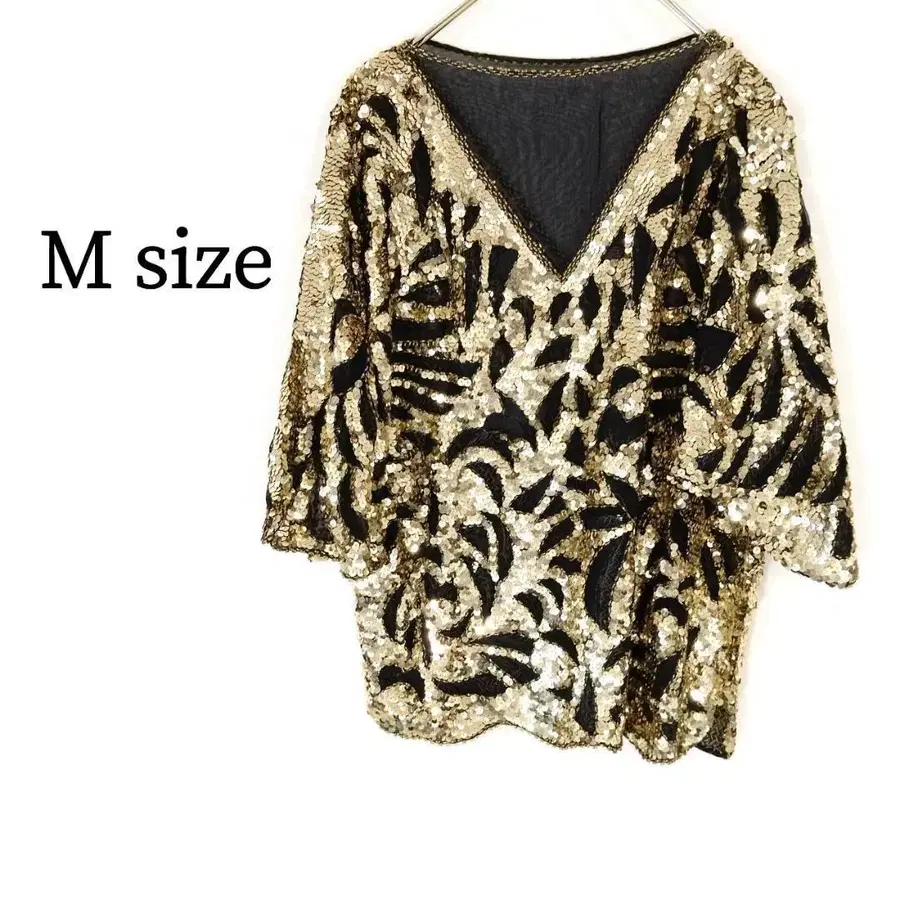 반짝이는 상의 튜닉 5부 기장 반팔 스팽글 골드 M