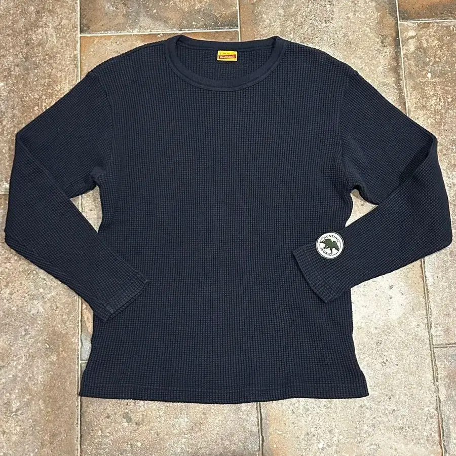 헌팅월드/HUNTING WORLD 써멀 와플 로고 와펜 티셔츠 블랙