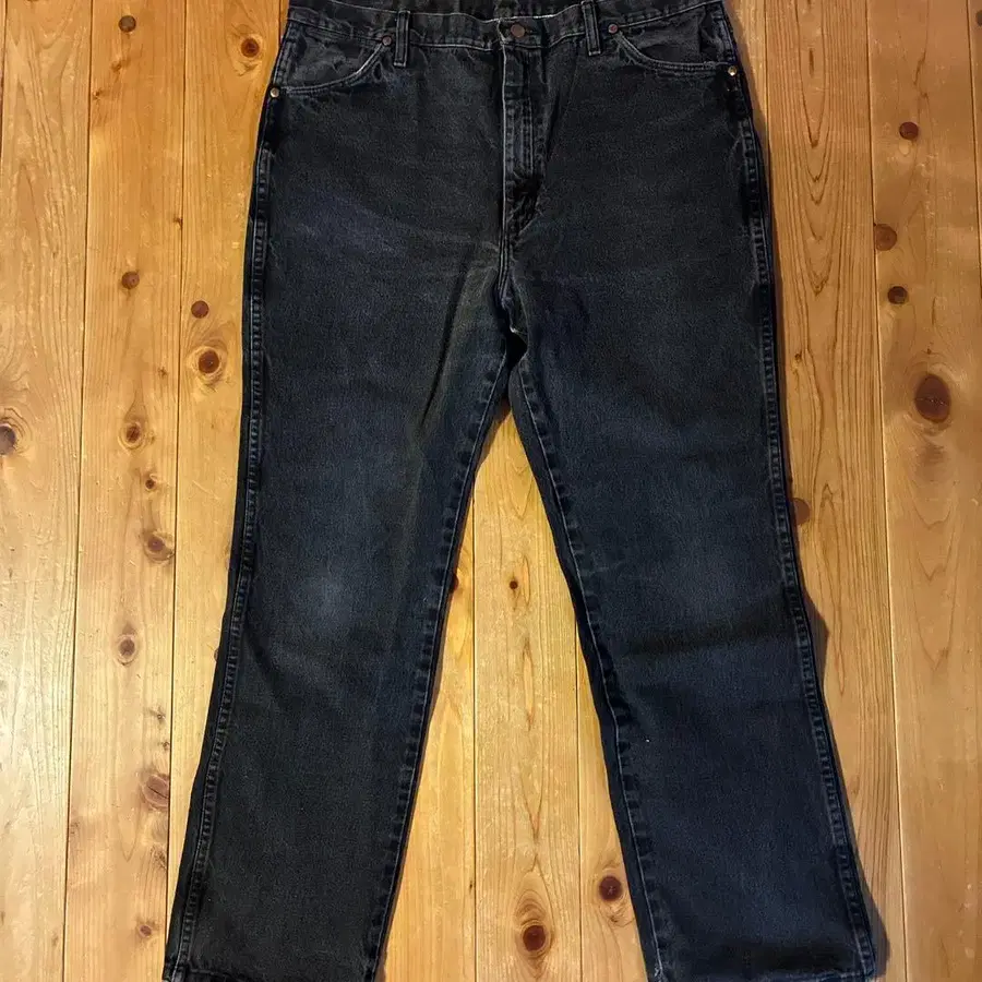 블랙 데님으로 보기 좋게 페이드되어 있어 분위기가 뛰어난 한 벌입니다. 제 지식 부족으로 모델 번호는 모르지만, 와이드 데님보다는 약간 가는 스트레이트 데님으로 많은 분들이 착용하실 수 있을 것이라고 생각합니다.