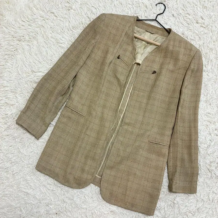 • 미사용품 울 100% 귀여운 체크 노카라 자켓