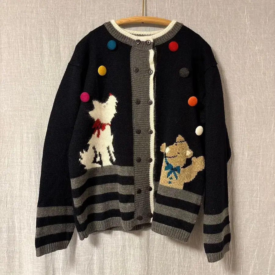 René Derhy 빈티지 가디건 (90년대 테리어 곰 패턴)