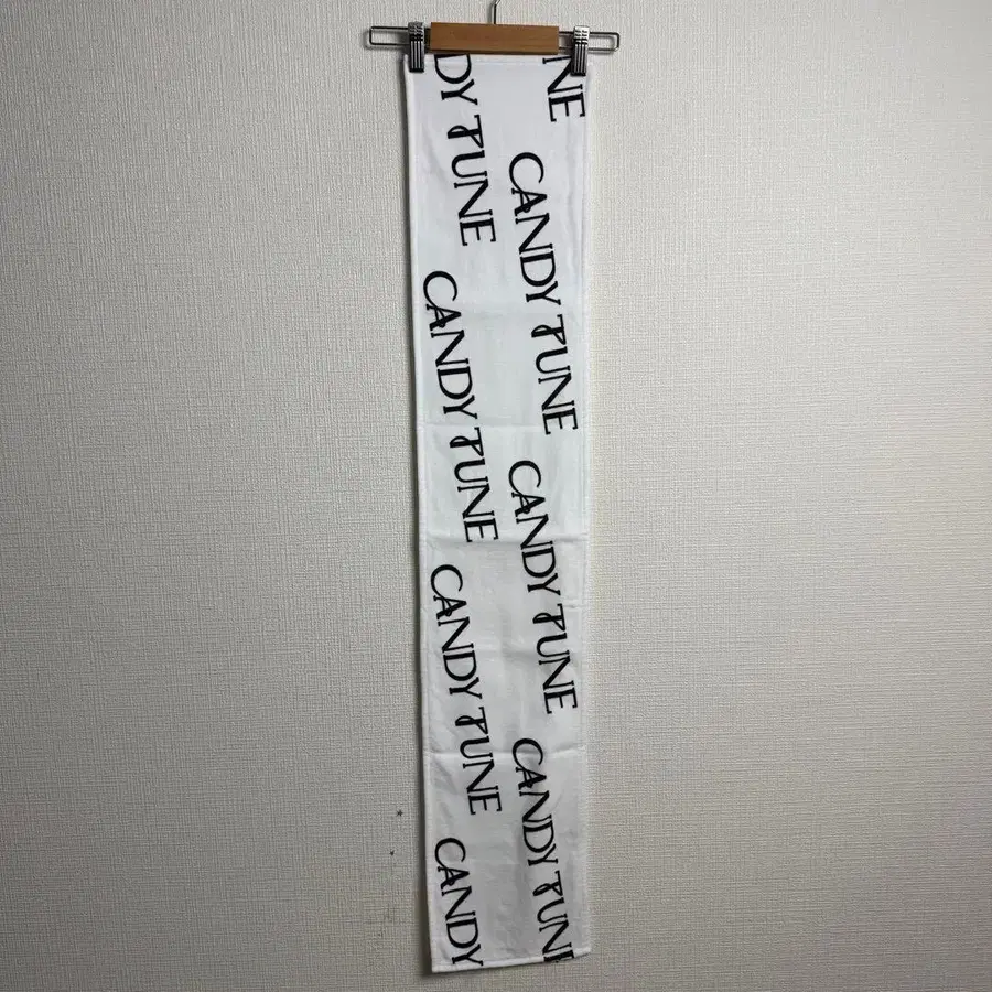 CANDY TUNE의 첫 번째 로고 올 로고 무늬 타월입니다. 화이트 바탕에 블랙 [CANDY TUNE] 로고가 들어간, 라이브나 현장에서 돋보이는 디자인입니다. 목에 걸기 쉬운 길쭉한 타입으로 보여서, 응원용으로는 물론 소지품의 표식으로도 사용하기 좋은 아이템입니다.