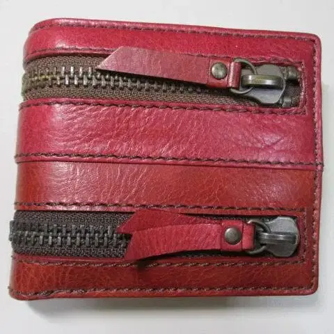 사이즈(약): 12 x 10 x 2 cm 색상: 레드 소재: 소가죽, 돈피, 원단