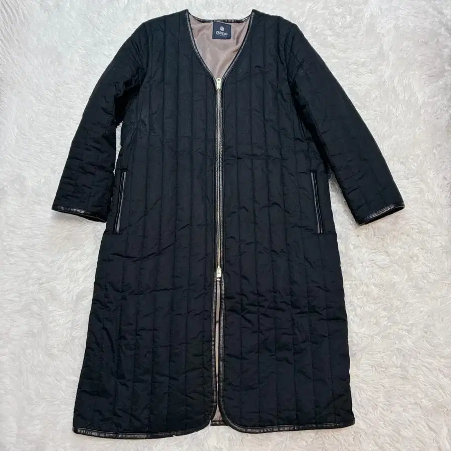 [컨디션 최상] 나노 유니버스 퀼팅 코트 V넥 롱 기장 블랙