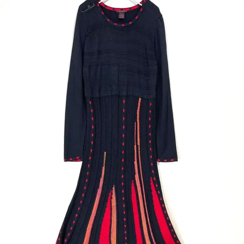 [ 구하기 어려움 ] 롱 원피스 디자인 니트 보더 크림슨 계열 유일무이