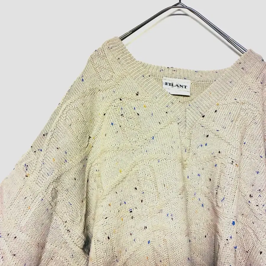 90s 니트 스웨터 V넥 화이트 올 패턴