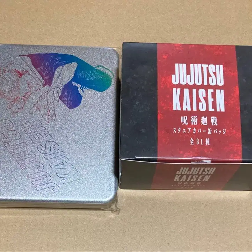 주술회전 스퀘어 커버 캔뱃지 통입 홀로 카드 세트 응모자 전원 서비스
