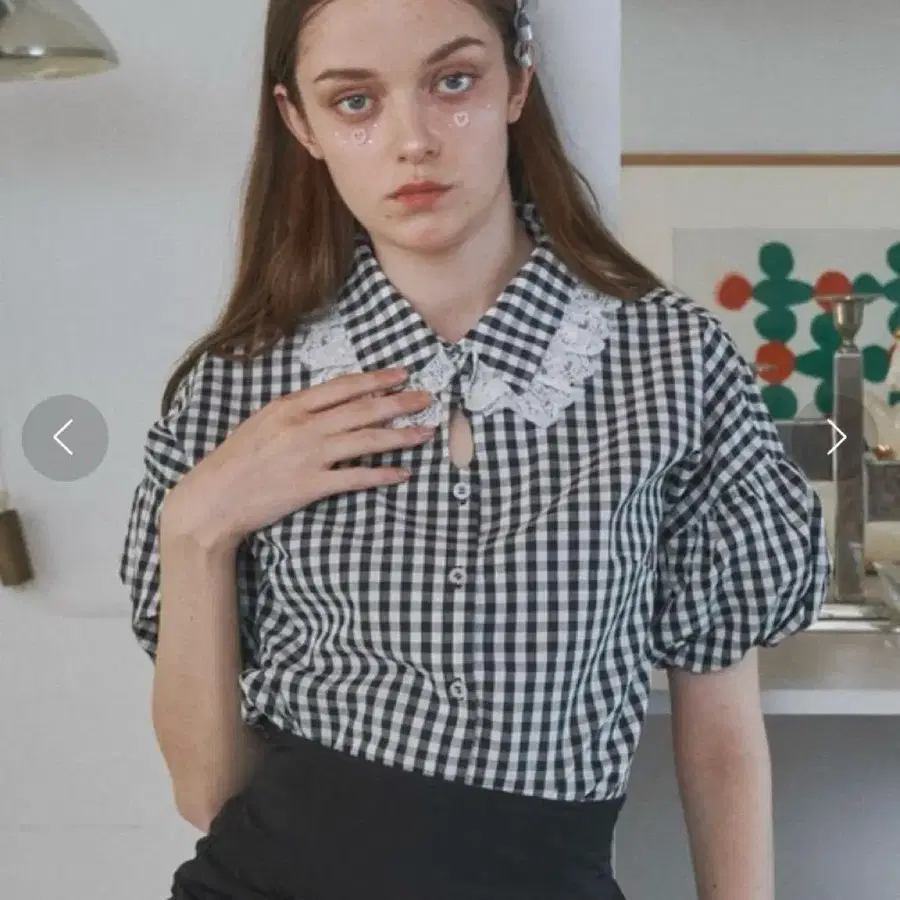 Lovilyn 눈물 트임 나긋어깨 블라우스 블랙 체크