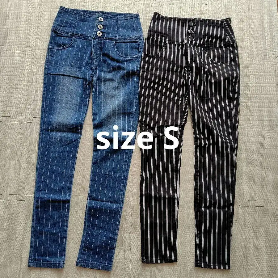 스키니 데님 스트라이프 패턴 하이웨스트 sizeS 2종 세트