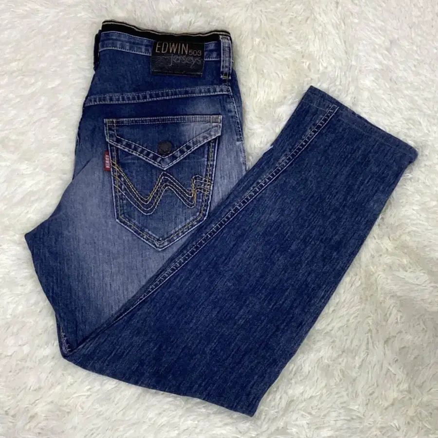 에드윈 EDWIN 저지 스트레치 STRECH 데님 팬츠 ERF007 M 사이즈 테이퍼드 청바지 503 인디고 히게 ジーパン 구제 의류
