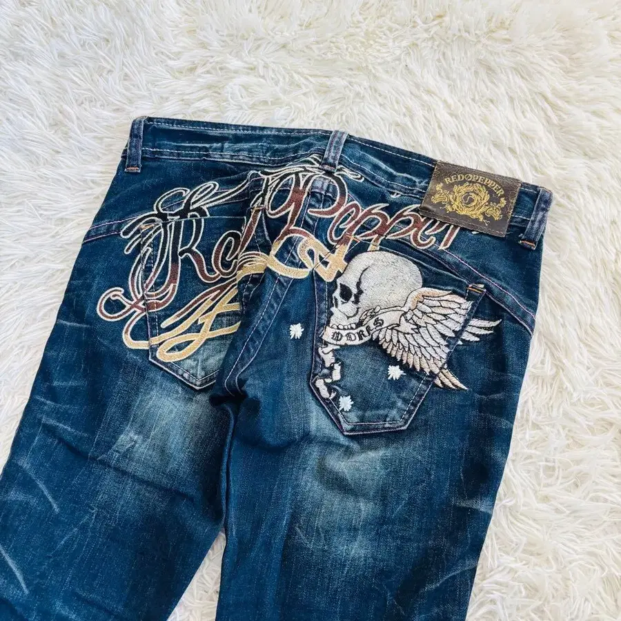 Y2K 레드페퍼 데님 팬츠 해골 천사의 깃털 27 M 상당