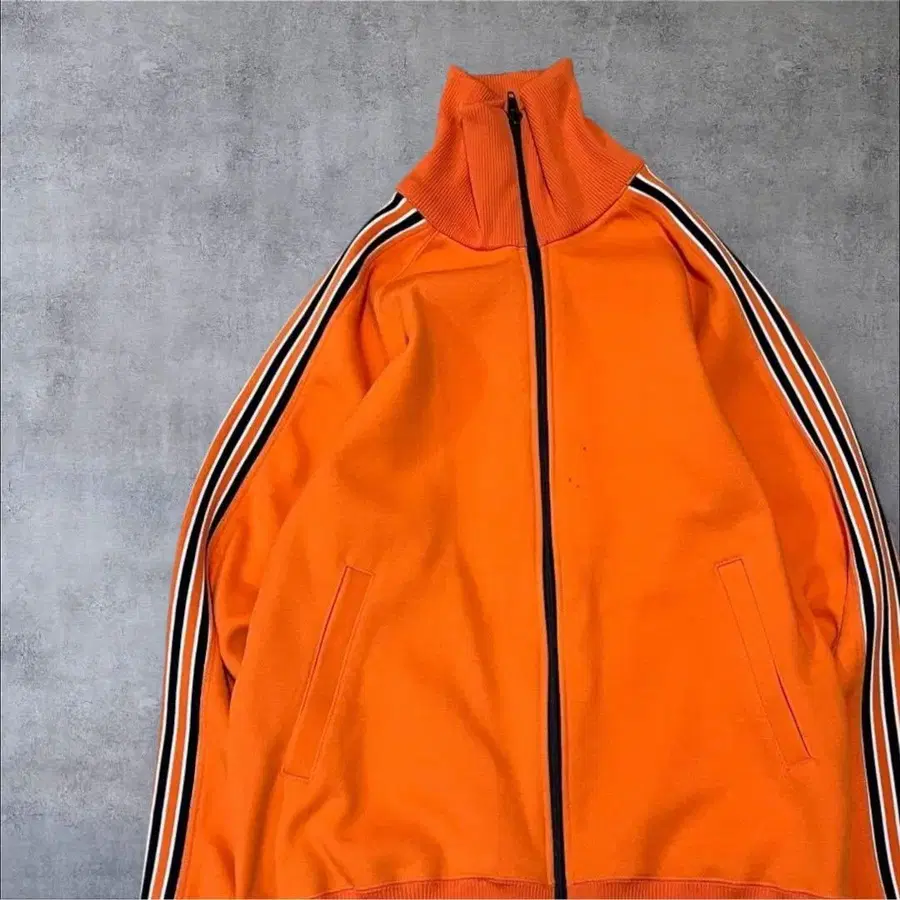 오렌지색 하이넥 저지, 사이드 스트라이프 디자인.