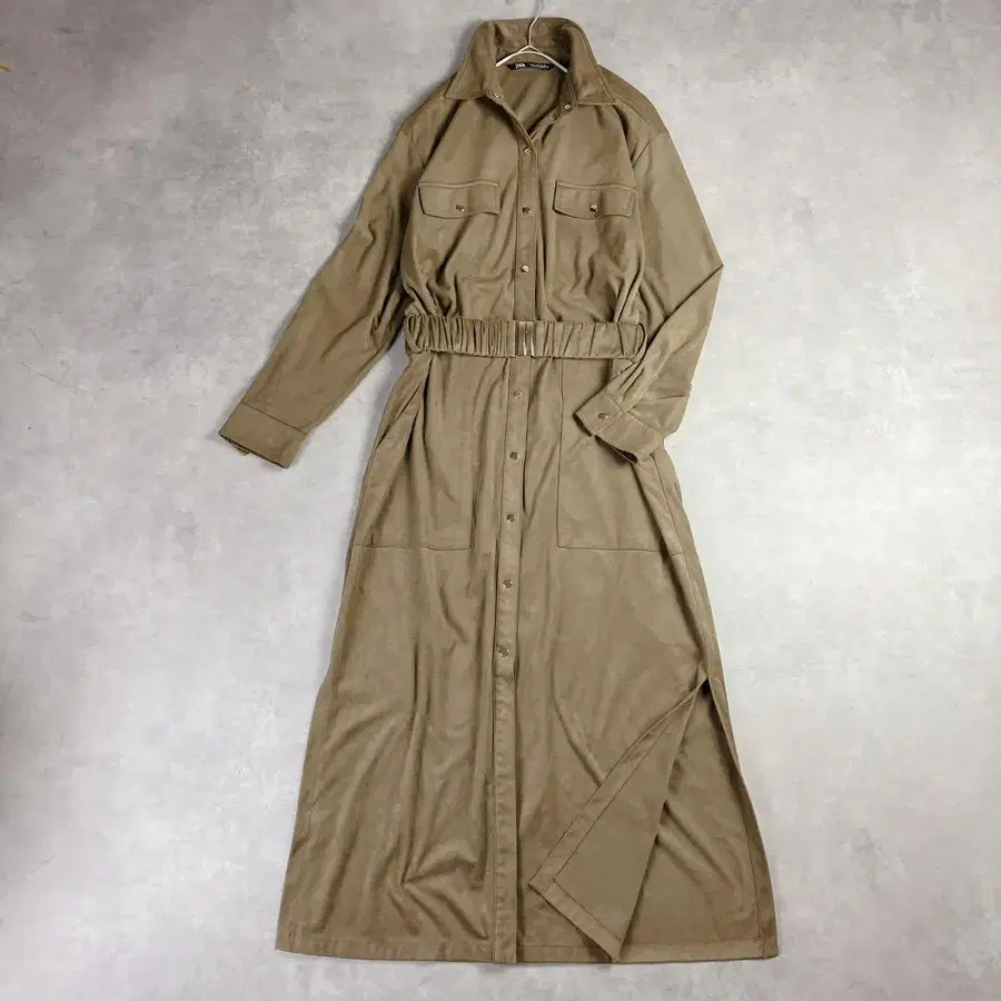 동일 원단 벨트가 포함되어 있어 허리를 조여 여성스럽게 연출하거나, 벨트를 풀러 릴랙스한 실루엣으로도 착용 가능합니다.