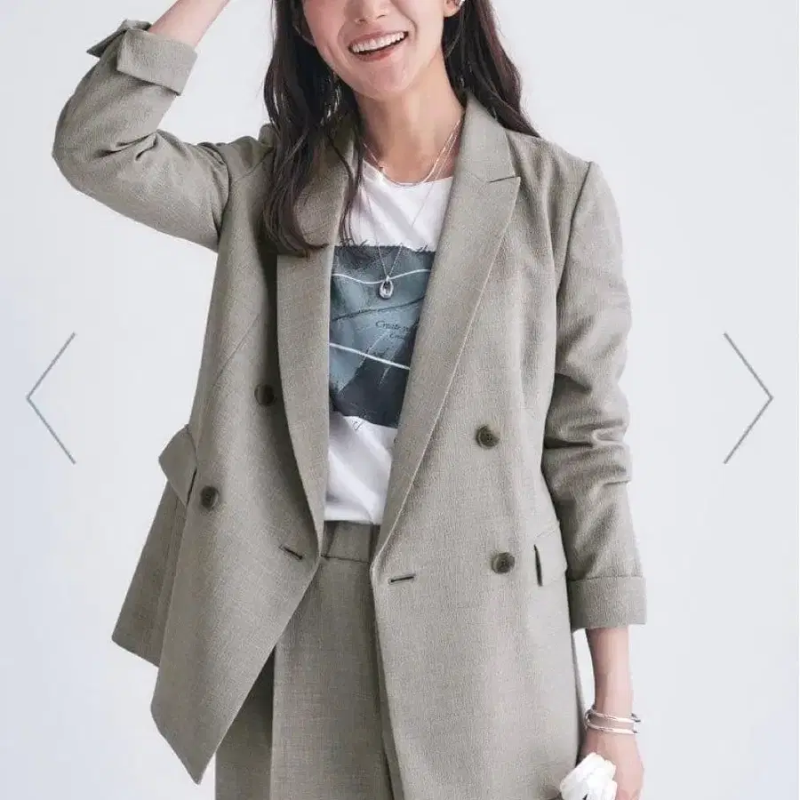 동일 소재 팬츠, 베스트와 셋업 스타일 조합을 즐길 수 있습니다.