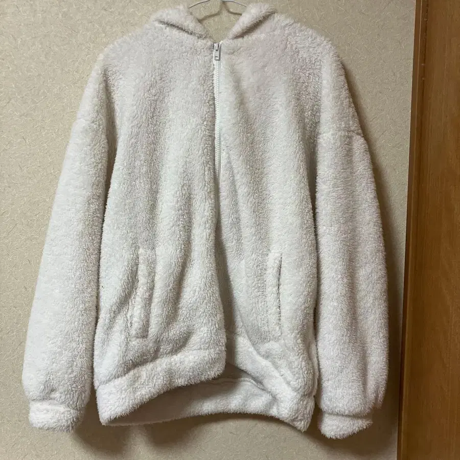 화이트 플리스 자켓 후드 부착