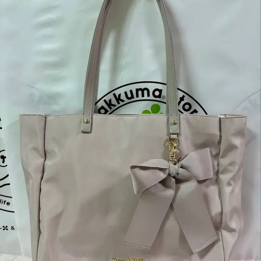 메종 드 풀르 EC 한정판 리본 참 포함 3룸 토트백 핑크