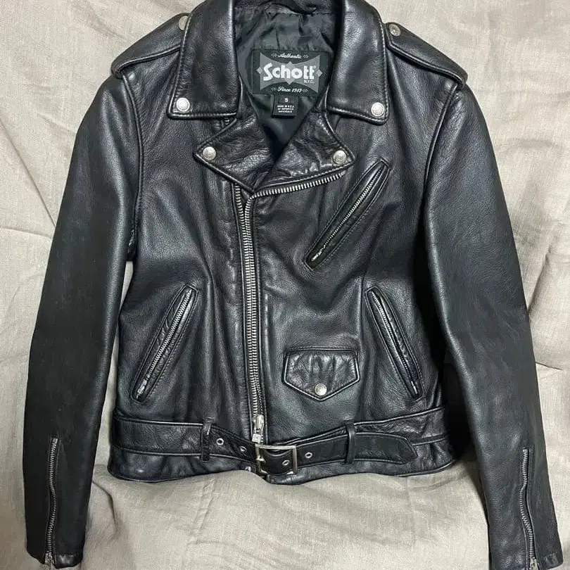 새상품 Schott 블랙 가죽 라이더 자켓 S 사이즈
