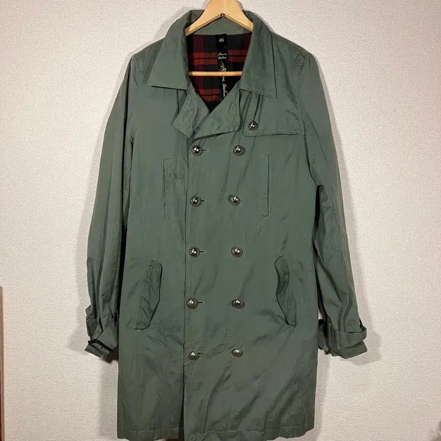 밀리터리 코트를 베이스로 한 더블 브레스트 사양으로,