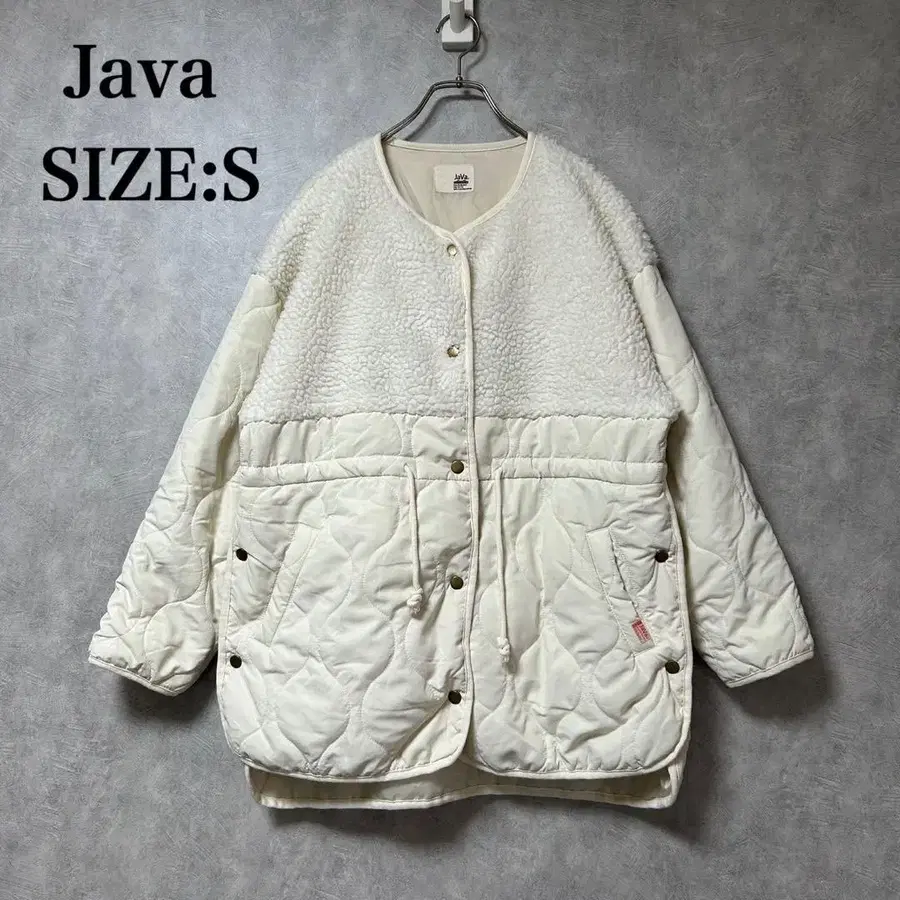 아이보리 색상의 보아 자켓, S 사이즈, 단추식, 포켓 부착으로 기능적입니다.