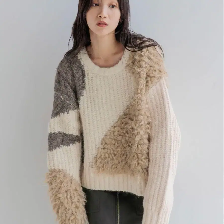 꽈배기, 골지, 루프 편직을 섞어 배색으로 사용하여 구제 의류 느낌으로 완성했습니다.