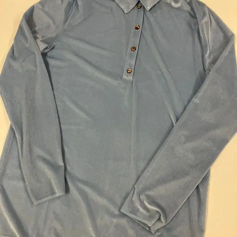 얇은 소재의 약간 시어한 느낌이 있는 벨루어 원단으로 만든 피케 셔츠형 풀오버 상의입니다.
