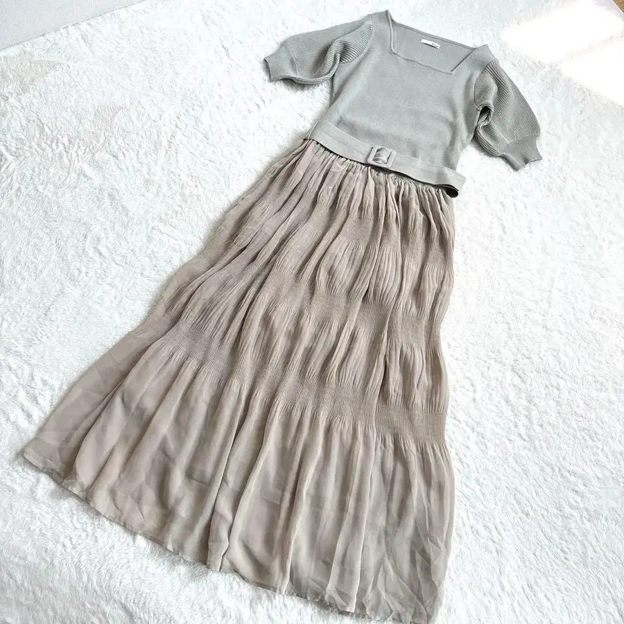 스퀘어 넥과 허리 벨트가 여성스러운 라인을 연출하며, 심플하면서도 고급스러운 인상을 줍니다.
