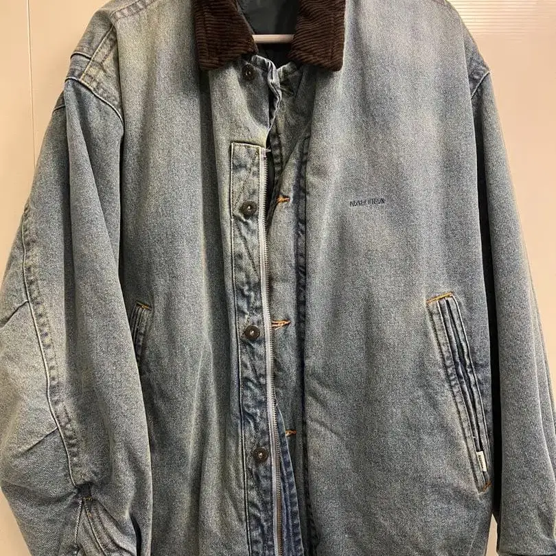 라이트 블루 데님 자켓 코듀로이 옷깃