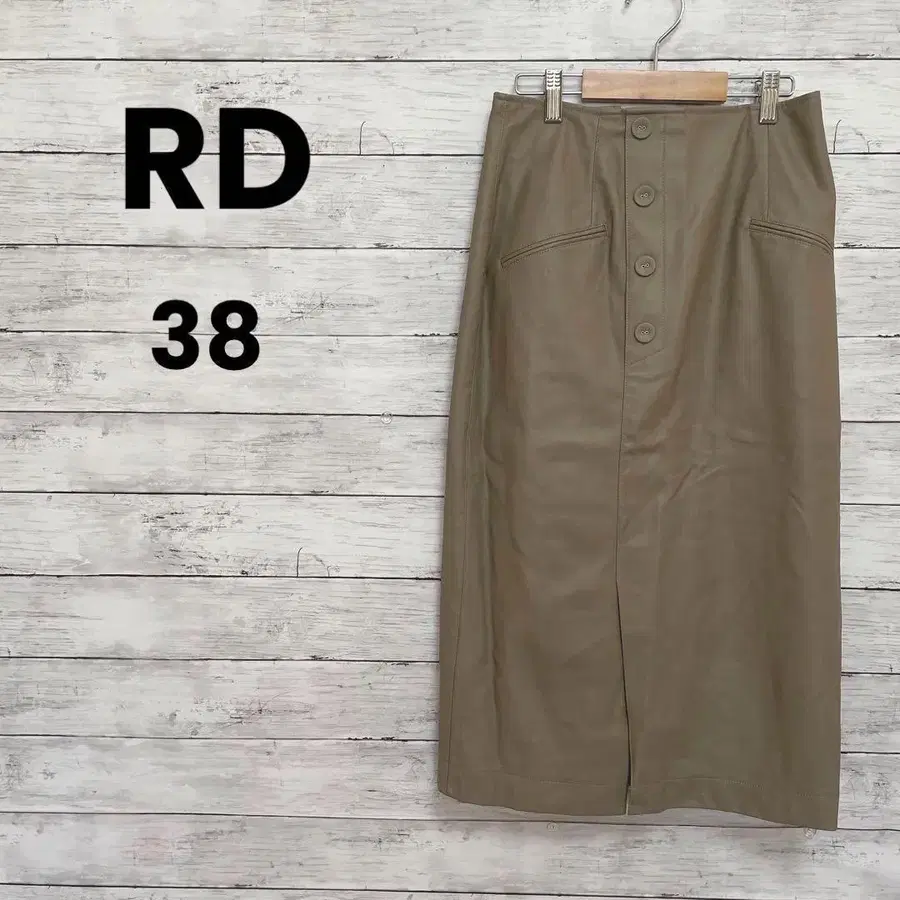 [ RD ] 타이트 스커트 (38) 인조 가죽 앞 슬릿 싸개 버튼